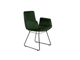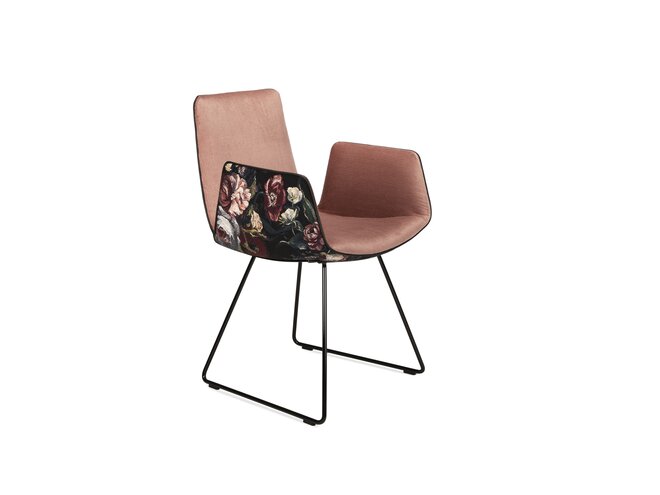 Die Armlehnversion ergänzt das reguläre Amelie-Modell perfekt. Die hohen Lehnen sorgen für noch mehr Sitzkomfort und stehen die zwei gemeinsam um einen Tisch, entsteht eine wohltuende optische Abwechslung.