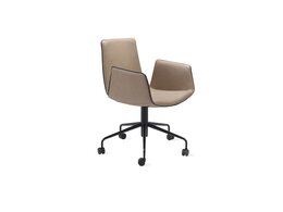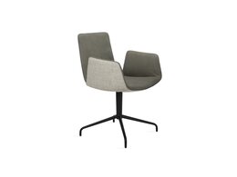 Die vollgepolsterte Sitzschale wird mit wertvollen Stoffen oder elegantem Leder bezogen, wobei sich die Bezugsmaterialien der Vorder- und Rückseite individuell kombinieren lassen. Das Gestell dieses Stuhls kann ebenfalls nach dem persönlichen Geschmack gewählt werden: Elegantes Eichenholz, gebeizt in verschiedenen Farben oder grazile Stahlgestelle, pulverbeschichtet. Unterstrichen wird die konsequente Linienführung des Designs von Birgit Hoffmann und Christoph Kahleyss durch einen Keder, der die Form der Sitz- und Lehnflächen optisch abrundet.