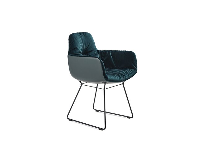 Leya vereint auf wundervolle Weise Gegensätze. Von außen erscheint der von Birgit Hoffmann und Christoph Kahleyss entworfene Stuhl mit seiner straff gepolsterten Schale klar und gradlinig. Wer sich setzt, fühlt sich jedoch augenblicklich gut aufgehoben. Die äußere Polsterung offenbart im Inneren ein flauschiges Kissen. Ein beinahe sinnliches Erlebnis. Alleinstehend verbreitet Leya im Arbeitszimmer eine konzentrierte und doch wohlige Atmosphäre. In der Gruppe fügt dieser schmale Stuhl sich bezaubernd an Ess- und auch Konferenztische: Er sorgt für ein positives Grundgefühl, ohne zu viel Aufmerksamkeit auf sich zu ziehen.