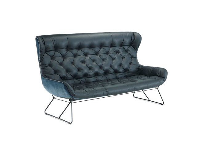 Leya vereint auf wundervolle Weise Kontraste. Von außen erscheint die von Birgit Hoffmann und Christoph Kahleyss entworfene Couch dieser Modellreihe mit seiner straff gepolsterten Schale klar und gradlinig. Wer sich setzt, fühlt sich jedoch augenblicklich gut aufgehoben. Sie ist konzipiert für die entspannte Kommunikation und passt ideal zu den Sesseln der Freifrau Manufaktur. Je nach Breite finden zwei oder drei Personen Platz auf diesem besonderen Designobjekt. Erhältlich ist es mit verschiedenen edlen Bezügen aus Stoff und Leder. Eine Couch, die durch ihre hohe, geschwungene Rückenlehne viel Aufmerksamkeit auf sich zieht, ohne dabei zu raumgreifend zu wirken. Ihr graziles, pulverbeschichtetes Metallgestell verleiht ihr eine vornehme Leichtigkeit.