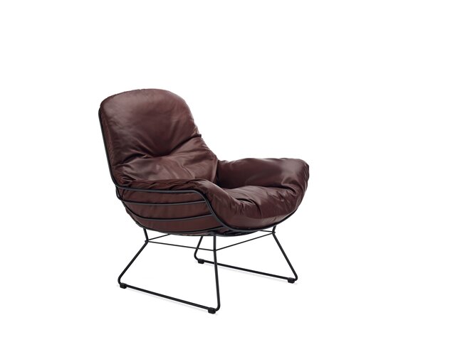 Mit Leyasol erhält die Erfolgsserie nun eine Schwester. Ein filigranes, wetterbeständiges Drahtgestell ahmt die femininen Linien nach, so dass die Schalenform erhalten bleiben konnte. Die abnehmbaren Auflagen können mit Materialien für Innen und Außen ausgestattet werden.