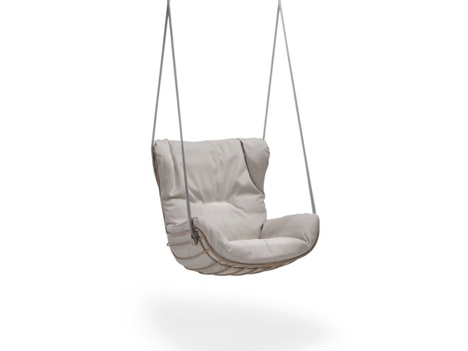 Mit Leyasol erhält die Erfolgsserie nun eine Schwester. Ein filigranes, wetterbeständiges Drahtgestell ahmt die femininen Linien nach, so dass die Schalenform erhalten bleiben konnte. Die abnehmbaren Auflagen können mit Materialien für Innen und Außen ausgestattet werden.