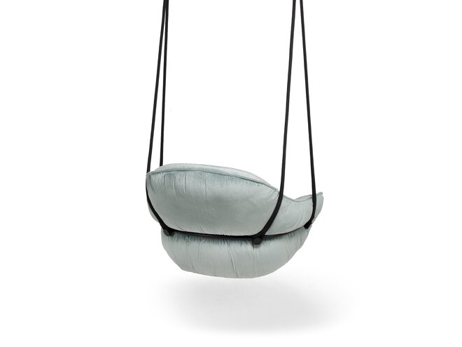 Erhältlich ist der Marie Lounge Swing Seat mit verschiedenen hochwertigen Bezügen aus Stoff und Leder. In die zwei Halteseile sind Metallösen gespleißt und an Edelstahlknöpfen so stilvoll wie sicher an der Sitzschale befestigt. Optional steht eine Ein-Punkt-Aufhängung (ab 2,50 Meter Raumhöhe) oder eine Zwei-Punkt-Aufhängng (ab 2,20 Meter Rauhöhe) zur Auswahl.