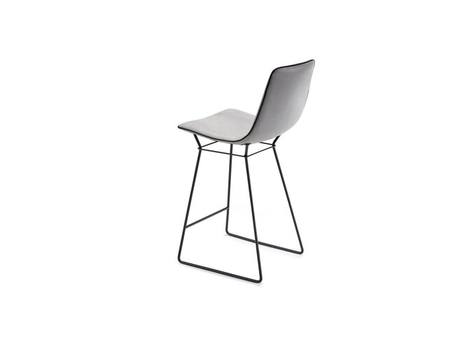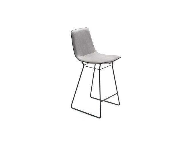 The seat shell is fully upholstered in valuable fabrics or elegant leather, while the front and back can be covered in different materials for a one-of-a-kind look. You can also choose the Amelie stool frame that best matches your personal tastes: an elegant wire frame or a rotating column foot with adjustable height. Piping visually outlines the shape of the seat and backrest, further highlighting the consistent lines throughout the design.