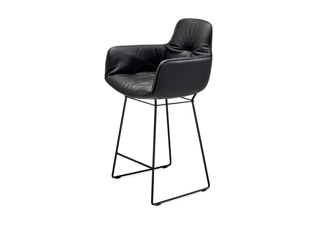 Leya reconciles contradictions in a wonderful way. With its tautly upholstered shell, the Kitchen Armchair designed by Birgit Hoffmann and Christoph Kahleyss makes a clear and linear impression from the outside, but you’ll feel the outstanding comfort the moment you sit down. The external padding reveals a soft cushion on the inside for an almost sensory experience. This pure design is available in a range of premium quality coverings and either on a delicately-poised wire frame; an elegant high back provides an extra level of comfort.