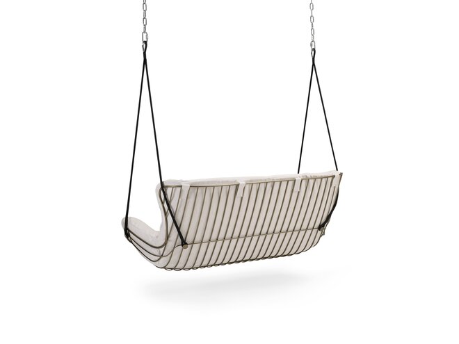 With the introduction of the Leyasol swing seat, Freifrau is making another statement for stylish outdoor living. The characteristic steel wire frame, available in a range of finishes from bronze and brass to all RAL Classic shades, lends a delicate elegance to the Leyasol Update: - Sun Lounger and Hollywood swing bench, officially known as the Lounge Couch Swing Seat. It offers space for up to three people to enjoy hours together in the open air - whether it's for stimulating conversation or simply watching the clouds.