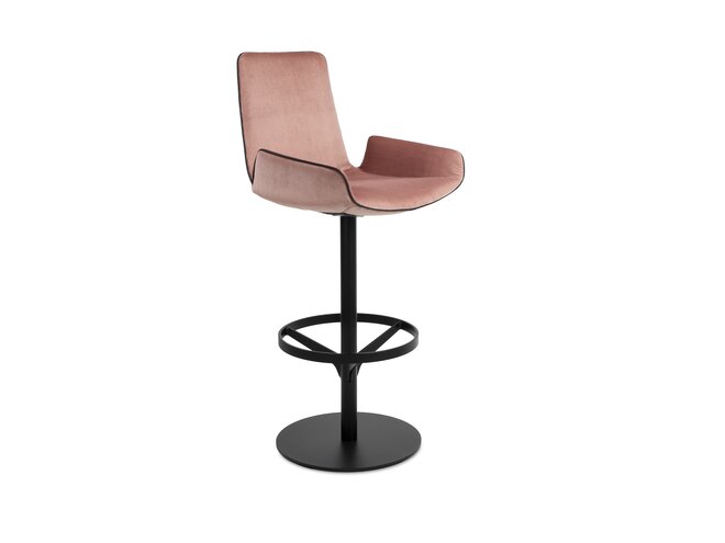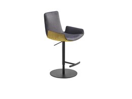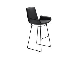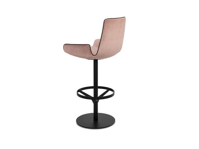 Die vollgepolsterte Sitzschale wird mit wertvollen Stoffen oder elegantem Leder bezogen, wobei sich die Bezugsmaterialien der Vorder- und Rückseite individuell kombinieren lassen. Der Barstuhl der Amelie-Modellreihe ist erhältlich mit einem grazilen Drahtgestell oder einem dreh- und höhenverstellbaren Säulenfuß, beides pulverbeschichtet und in vielen Farbtönen verfügbar. Unterstrichen wird die konsequente Linienführung des Designs von Birgit Hoffmann und Christoph Kahleyss durch einen Keder, der die Form der Sitz- und Lehnflächen optisch abrundet.