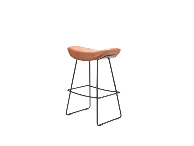 Ein guter Reitersattel bietet festen, bequemen Halt und ermöglicht es, flexibel auf Herausforderungen zu reagieren, die sich ergeben, wenn Mensch und Tier gemeinsam unterwegs sind. Eva Paster und Michael Geldmacher haben sich intensiv mit dem Jahrhunderte alten Sattlerhandwerk auseinandergesetzt und daraus eine Sitzmöbelreihe entwickelt. Auf Kya kann man ganz traditionell oder – wie auf einem Sattel - rittlings Platz nehmen. Ein charmant ausdrucksstarker Barhocker, der auch noch gesund ist: Er lädt dazu ein, die Position zu wechseln, mit verschiedenen Sitzmöglichkeiten zu spielen und tut so dem oftmals zu einseitig belasteten Rücken gut. Verfügbar mit Holz- oder Stahlgestell.