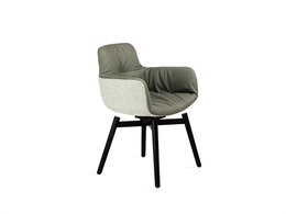 Leya vereint auf wundervolle Weise Gegensätze. Von außen erscheint der von Birgit Hoffmann und Christoph Kahleyss entworfene Stuhl mit seiner straff gepolsterten Schale klar und gradlinig. Wer sich setzt, fühlt sich jedoch augenblicklich gut aufgehoben. Die äußere Polsterung offenbart im Inneren ein flauschiges Kissen. Ein beinahe sinnliches Erlebnis. Alleinstehend verbreitet Leya im Arbeitszimmer eine konzentrierte und doch wohlige Atmosphäre. In der Gruppe fügt dieser schmale Stuhl sich bezaubernd an Ess- und auch Konferenztische: Er sorgt für ein positives Grundgefühl, ohne zu viel Aufmerksamkeit auf sich zu ziehen.
