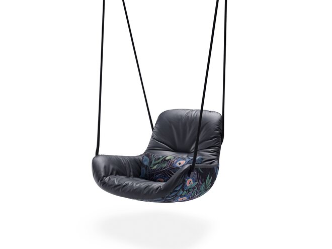 Der Leya Lounge Swing Seat sorgt für Momente der Schwerelosigkeit in den eigenen vier Wänden. Der von Birgit Hoffmann und Christoph Kahleyss entworfene Lounge-Sessel hängt an zwei stabilen schwarzen Seilen an der Decke und wer auf ihm hin und her schaukelt, den überkommen fast schon kindliche Glücksgefühle. Und das ohne auf den für Leya charakteristischen Sitzkomfort zu verzichten.  Wie alle Möbel der Modellreihe besteht auch dieses einzigartige Designobjekt aus einer von außen straff gepolsterten, gradlinigen Schale, die im Innern ein flauschiges Kissen offenbart. Ein beinahe sinnliches Erlebnis. Erhältlich ist der Lounge Swing Seat mit verschiedenen hochwertigen Bezügen aus Stoff und Leder. Die zwei Halteseile sind mit Metallösen und Lederriemen so stilvoll wie sicher an der Sitzschale befestigt.