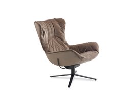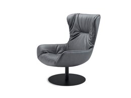 Leya vereint auf wundervolle Weise Kontraste. Von außen erscheint der von Birgit Hoffmann und Christoph Kahleyss entworfene Ohrensessel dieser Modellreihe mit seiner straff gepolsterten Schale klar und gradlinig. Wer sich setzt, fühlt sich jedoch augenblicklich gut aufgehoben. Das flauschige Kissen in seinem Innern sorgt für ein beinahe sinnliches Erlebnis, fast wirkt es so, als würde er einen umarmen. Der ideale Ort zum Abschalten. Erhältlich ist das einzigartige Designobjekt mit vielen verschiedenen hochwertigen Bezügen aus Stoff und Leder. Beim Unterbau kann zwischen einem Drahtgestell, einem Tellerfuß und einem Fußkreuzgestell mit oder ohne Wipp- und Kippmechanik gewählt werden.