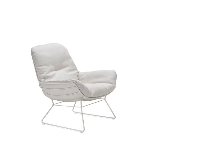 Mit Leyasol erhält die Erfolgsserie nun eine Schwester. Ein filigranes, wetterbeständiges Drahtgestell ahmt die femininen Linien nach, so dass die Schalenform erhalten bleiben konnte. Die abnehmbaren Auflagen können mit Materialien für Innen und Außen ausgestattet werden.