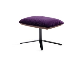 Genau wie die Sitzmöbel lässt sich auch der Ottoman mit Leder oder Textilien beziehen, je nach Vorliebe auch individuell kombiniert an Innen- und Außenseite. Eine Besonderheit ist das harfenartige, grazile Drahtgestell. Erhältlich ist Marla zudem mit eleganten Kufenfüßen.