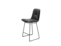 The seat shell is fully upholstered in valuable fabrics or elegant leather, while the front and back can be covered in different materials for a one-of-a-kind look. You can also choose the Amelie stool frame that best matches your personal tastes: an elegant wire frame or a rotating column foot with adjustable height. Piping visually outlines the shape of the seat and backrest, further highlighting the consistent lines throughout the design.