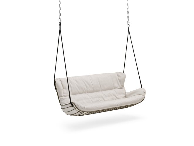 With the introduction of the Leyasol swing seat, Freifrau is making another statement for stylish outdoor living. The characteristic steel wire frame, available in a range of finishes from bronze and brass to all RAL Classic shades, lends a delicate elegance to the Leyasol Update: - Sun Lounger and Hollywood swing bench, officially known as the Lounge Couch Swing Seat. It offers space for up to three people to enjoy hours together in the open air - whether it's for stimulating conversation or simply watching the clouds.