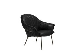 This gesture is emphasised in the the spacious lounge version of Marie, the comfort of which is enhanced by an integrated rocker-tilt mechanism that is easy to operate using a lever on the side. The armchair is also characterised by the loose upholstery of the backrest shell, which is held in place by a filigree bracket. In contrast to the chair, the frame is detached from the statics of the frame, which is based on a central column with a cross base. With the introduction of the 4-legged base, the lounge models in the collection have a new look.